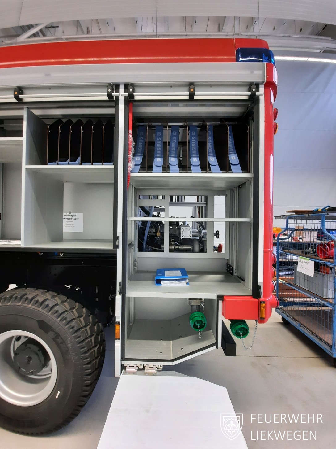 - Wo wird kleineres feuerwehrtechnisches Material verstaut, das von uns beigestellt wird?